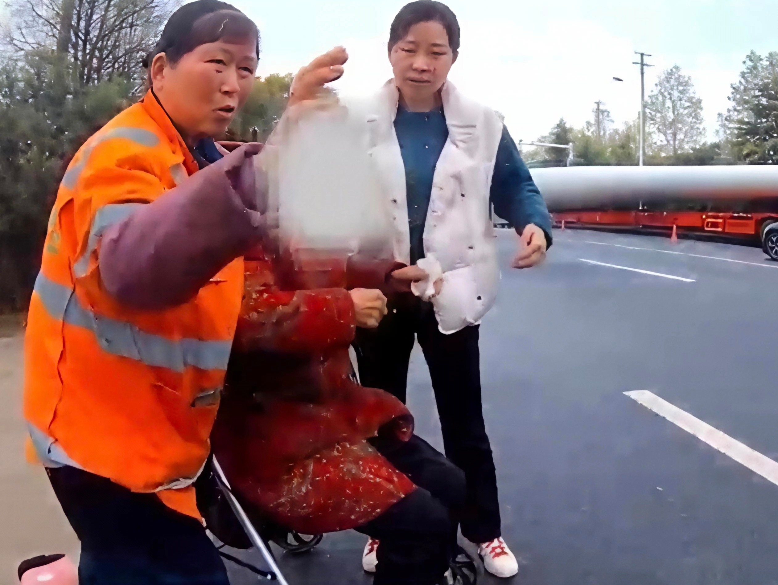 张群梅和环卫工一人一边,握住老人双手,不停呼唤。约一分钟后,她发现老人嘴巴微微张合。“还有呼吸!”她小心扶起老人上半身,让其靠在怀中,轻拍背部,发现老人口中有痰液堵塞,迅速掏出纸巾,与环卫工配合细心清理。这个细微的动作,可能正是打通生命通道的关键。几分钟后,老人呼吸逐渐平稳。张群梅始终蹲在老人身边,和环卫工一左一右守护着。