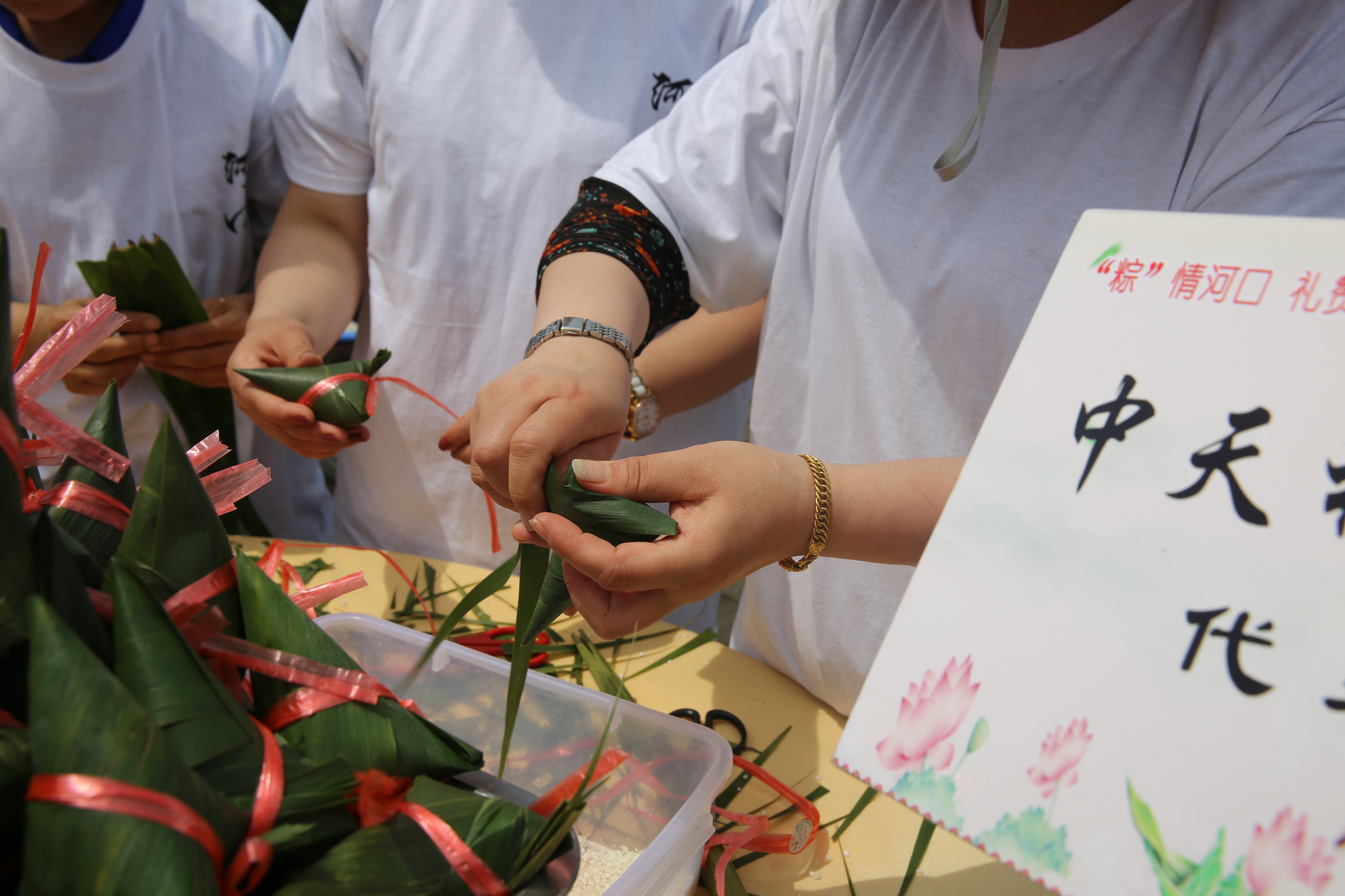 包粽子是端午节的一种传统习俗。中天宽带、中天智能装备、中天装备电缆、中天合金、材料总厂、光缆总厂、后勤公司等都开展了包粽子的活动。员工们聚在一起热热闹闹地包着粽子,现场洋溢着一片欢声笑语。可能在场的吃过粽子的不少,第一次动手包粽子的却是大多数。折粽叶、填糯米、放粽馅、裹叶子、绑粽线……包好的粽子各式各样,有三角形的、有四角形的,虽然囧态各异,但片片粽叶包含着浓浓情意,更传递着和谐与平安。